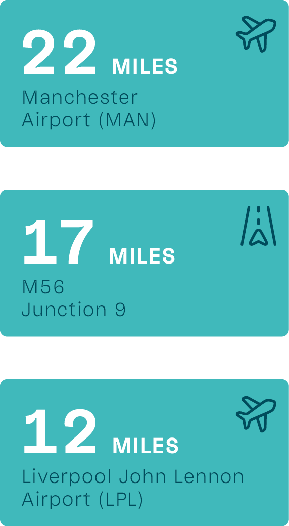 Conveniently located 0.75 miles from Junction 8 of the M62 and just 3 miles from Junction 21a of the M6. Within 20 miles of Manchester Airport and John Lennon Airport.